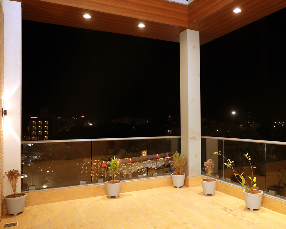 Designed for a group of 3-4 people to live together, these spacious rooms are perfect for an accommodation in Dwarka. They have King Size beds with an option to arrange extra beds. They are spread over an area of 196 sq. ft., and some of the ohter amenities available are complimentary Wi-Fi, Mini Bar, Tea kettle, chairs with table, side tables and a flat-screen TV and an electronic safe.