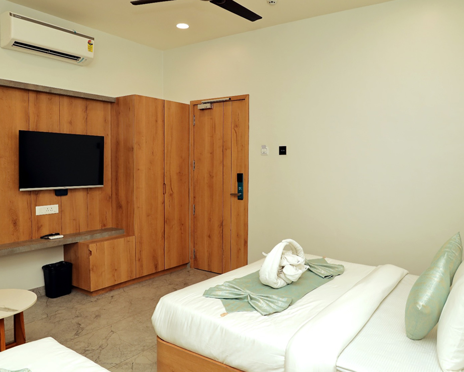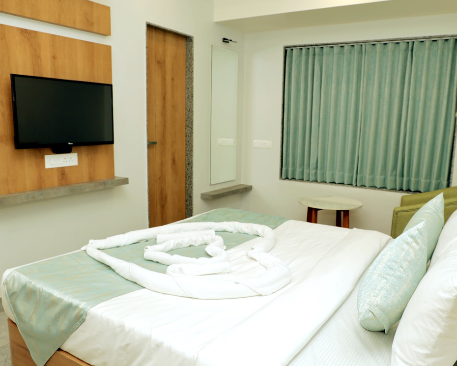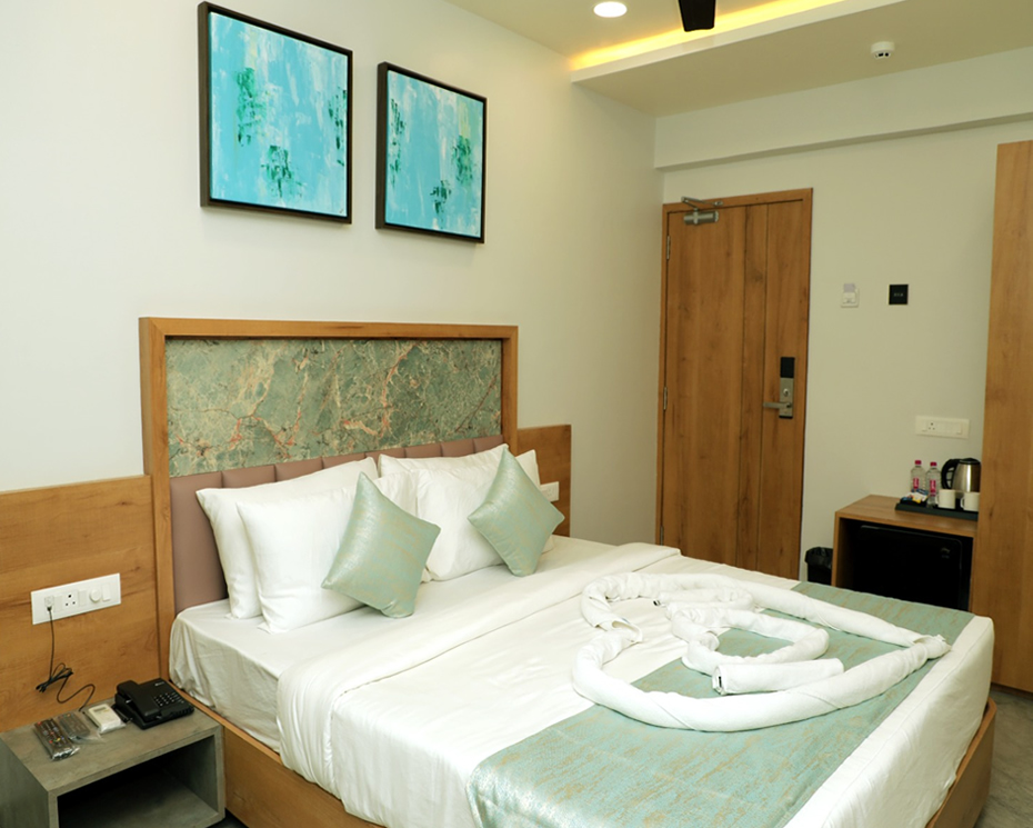 With an area of 168 sq. ft., these rooms are designed keeping in mind luxury and the comfort of our guests who need to wind up the day after exploring this religious city. Elegant interiors, attractive paintings adorn the room's décor. The Executive Room's are equipped with amenities available are complimentary Wi-Fi, Tea kettle, chairs with table, side table and a flat-screen TV and an electronic safe.